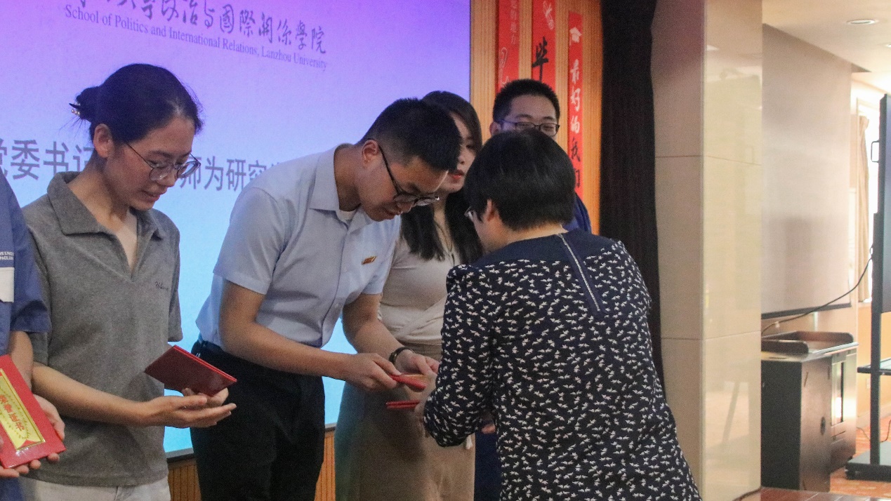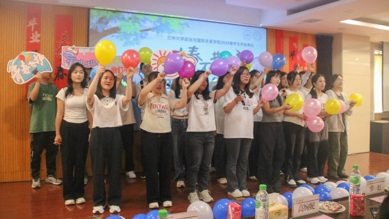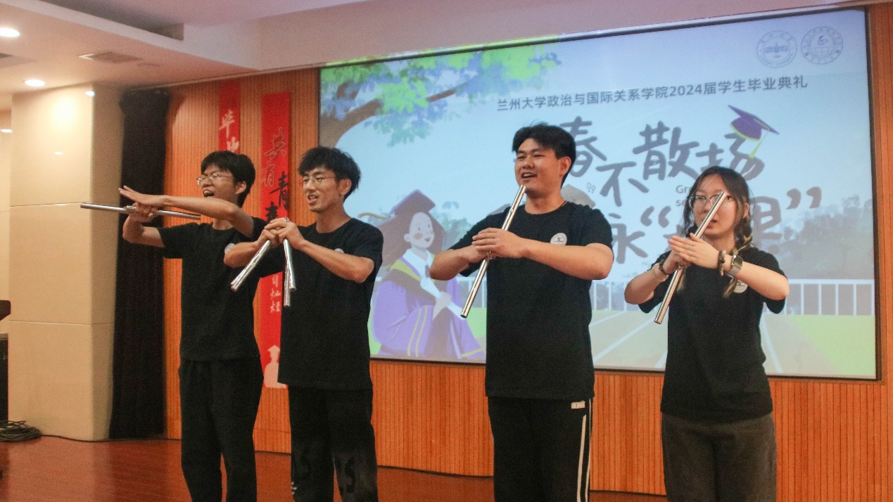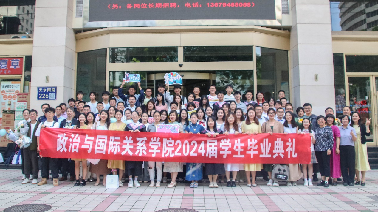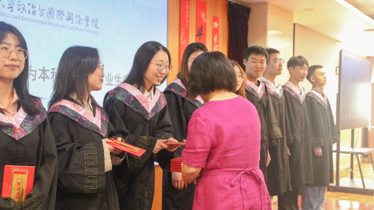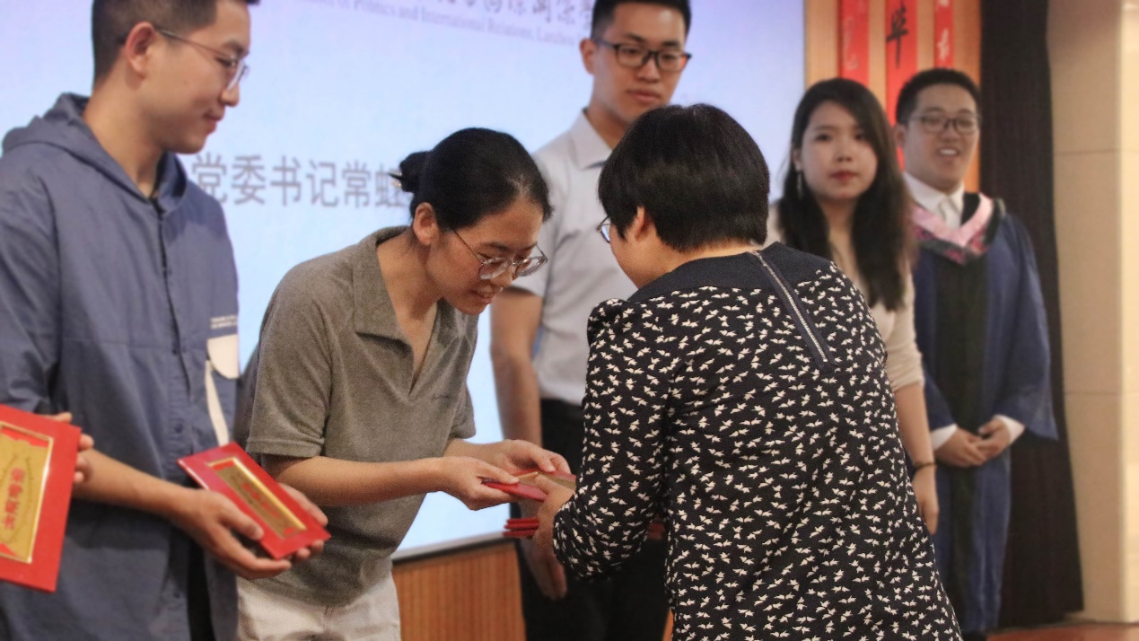 随后,博士生学生代表杨忞和本科生学生代表田磊分别进行发言。杨忞同学回顾自己的求学历程,深情讲述“十载求学路、一生兰大情”,梦寐以求的学术氛围、仰慕已久的学术前辈都令她难以忘怀,最后杨忞祝愿同学们无论处于何种境遇都要永葆平静的心态。田磊同学则以“为政以德,譬如北辰,居其所而众星拱之”开篇,指出作为一名政国学子,我们不仅要以德化行,用德行约束自己,更要有对世界的真实关切,仰望星空、脚踏实地,为实现理想而不懈奋斗。